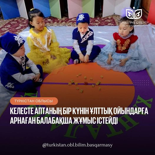 Келес ауданында орналасқан «Балдырған» балабақшасында аптаның әр сәрсенбісі «Ұлттық күн» деп дәріптеліп, сол күні қызметкерлер ұлттық үлгіде киініп, барлық топтар бойынша ұлттық құндылықтар насихатталады. «Балдырған» бөбекжай-балабақшасында мектеп жасына дейінгі бүлдіршіндерді ұлттық ойындармен таныстыру және ұлттық құндылықтарды насихаттау мақсатында аптаның бір күнін қазақ халқының ұлттық ойындарына арнаған дейді білім бөлімінің әдіскері Ақмарал Апетова:
