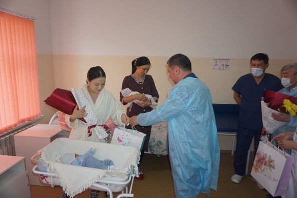 Қуанышты сәттен Түлкібас ауданының әкімі Нұржан Ізтілеуов те қалыс қалмай, сол күні аудандық перзенханасында дүниеге келген нәрестелердің аналарын құттықтап қайтты.