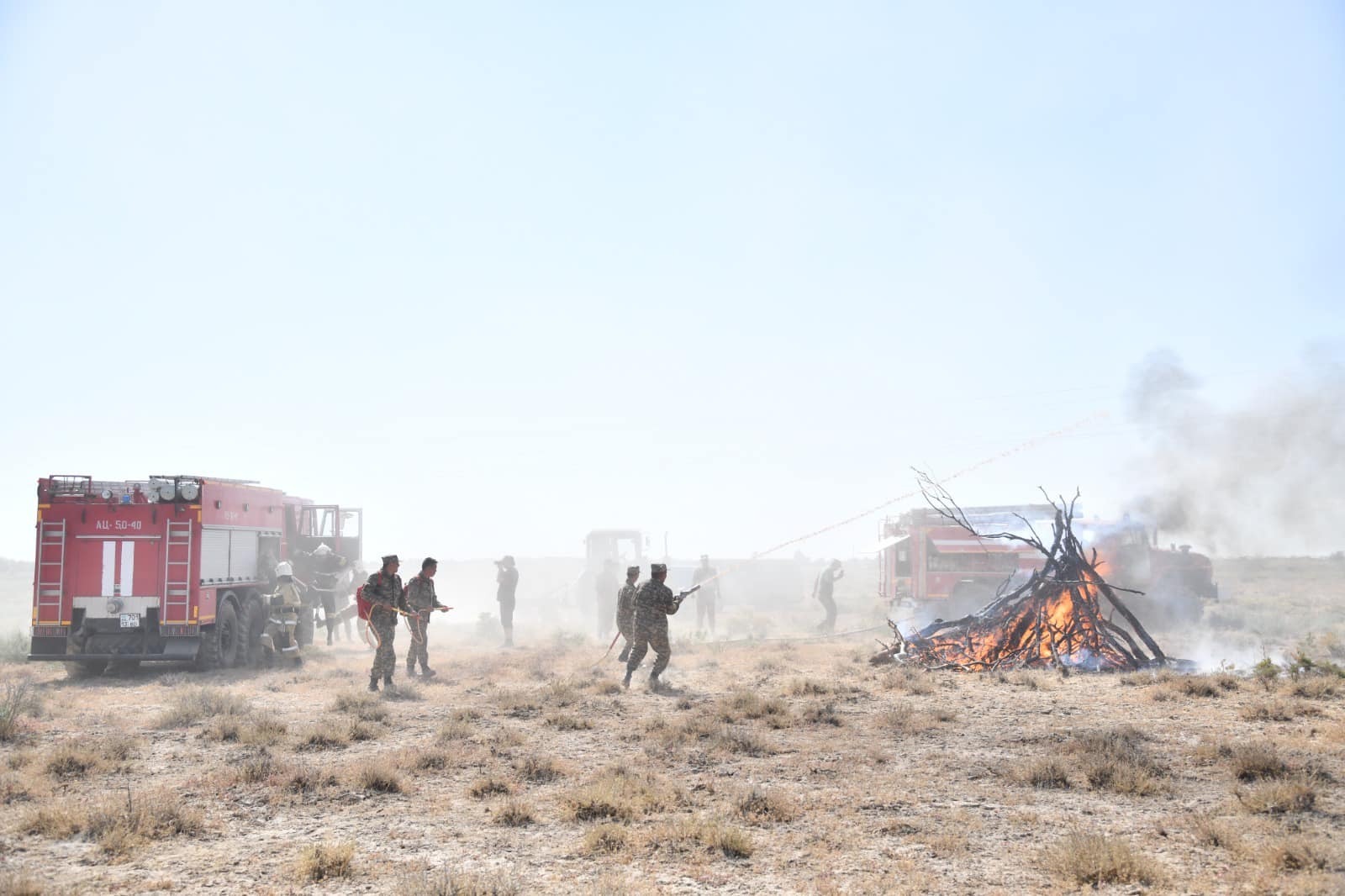 На учебно-тренировочном сборе из-за неосторожного обращения с огнем жителей, пасущих скот на пастбищах, прилегающих к лесному хозяйству, произошел пожар на равнине, и в соответствии с правилами пожаротушения соответствующие структуры и волонтеры практически продемонстрировали действия по ликвидации и тушению пожара.